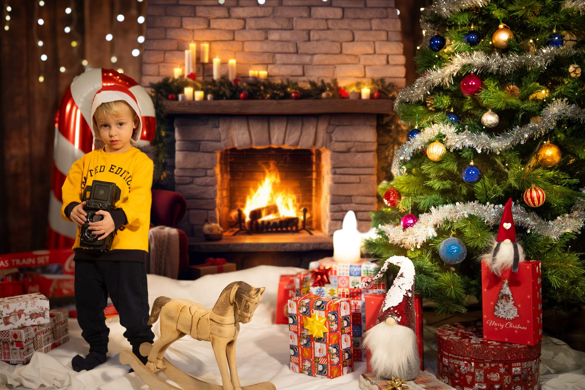 Affidati a Studio fotografico Luci e ombre. Organizziamo sessioni fotografiche di coppia, per bambini e per famiglie proprio nello studio a Villafranca di Verona, con allestimento di una scenografia Natalizia.
